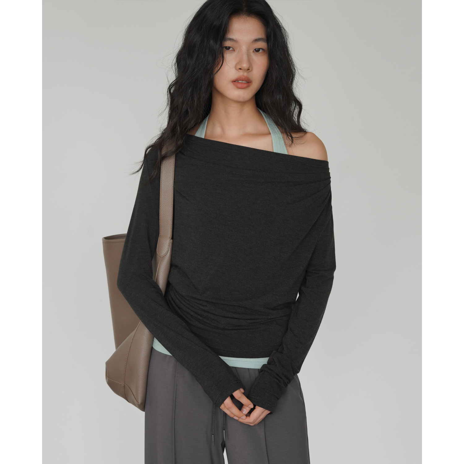sameuoo free-range culture, cross chimney neck, straight shoulder, long-sleeved T-shirt, autumn and winter base shirt, and slim top undershirt