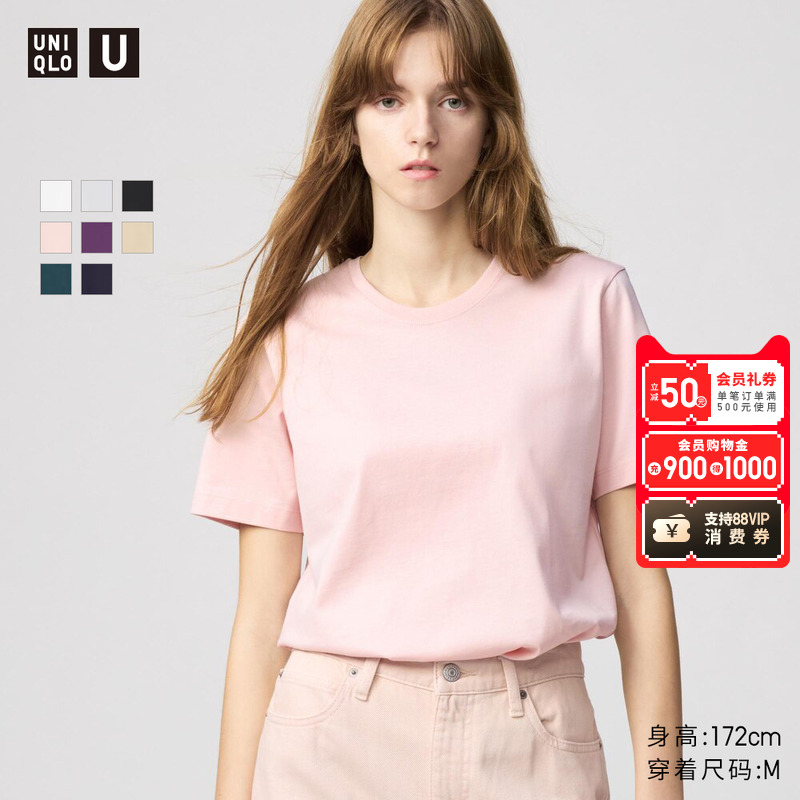 Uniqlo Women's SUPIMA COTTON Crew Neck T-Shirt Short Sleeve Bottom with a new 474408
