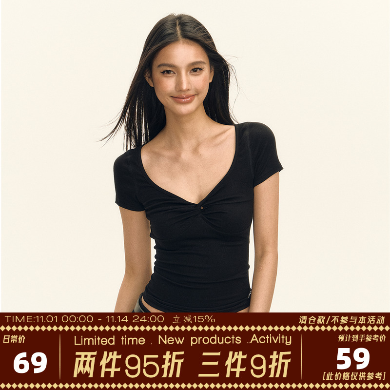 YOLO SHOP Pure Desire V-neck versatile white short-sleeved women's new summer front shoulder inner T-shirt base shirt top