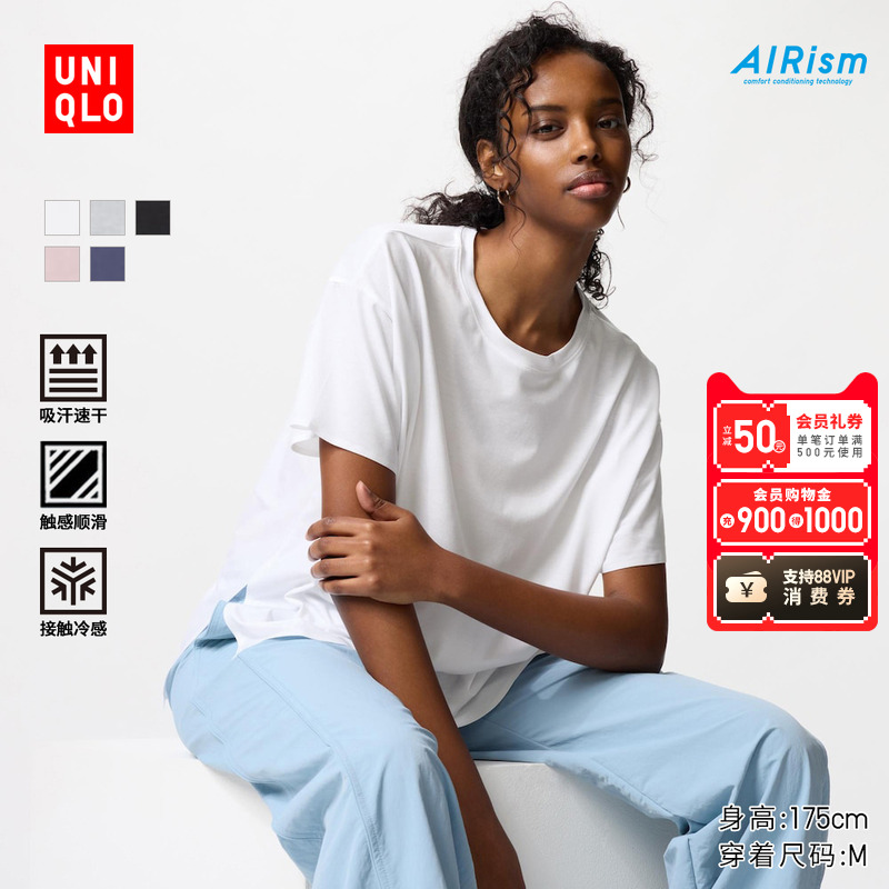 Uniqlo women's AIRism T-shirt/short-sleeved loose top 474415