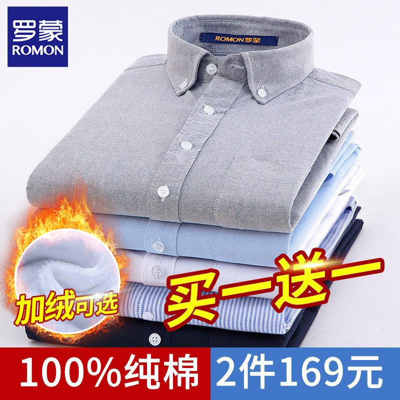 Romon 2025 Winter Cotton Long Sleeve Shirt Men's Oxford Spun Fleece Shirt Middle-aged Dad Thickened Warm Inches