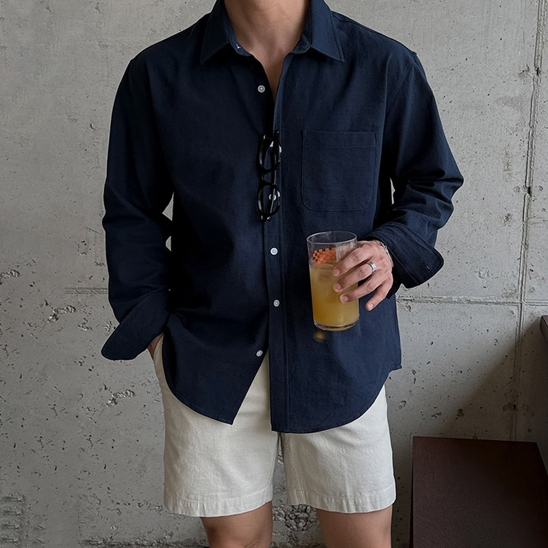 SSUMENAM "Minimalist Old Money Style Cotton and Linen" Summer Long-Sleeved Shirt Men's Korean Seaside Sunscreen Shirt