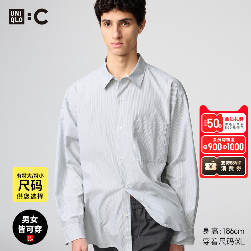 Uniqlo collaboration model / men's and women's loose striped shirt / long sleeve shirt casual 25 autumn/winter new 480763