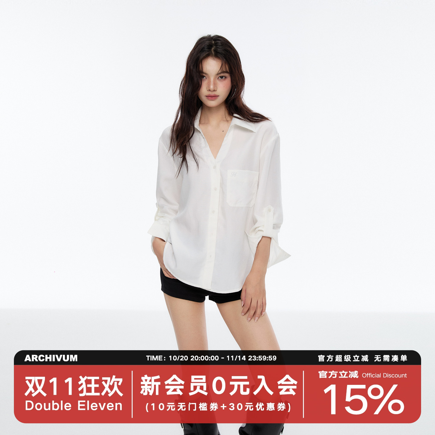 Archivum white V-neck old money temperament loose casual lazy feel linen Tencel blend long-sleeved shirt shirt