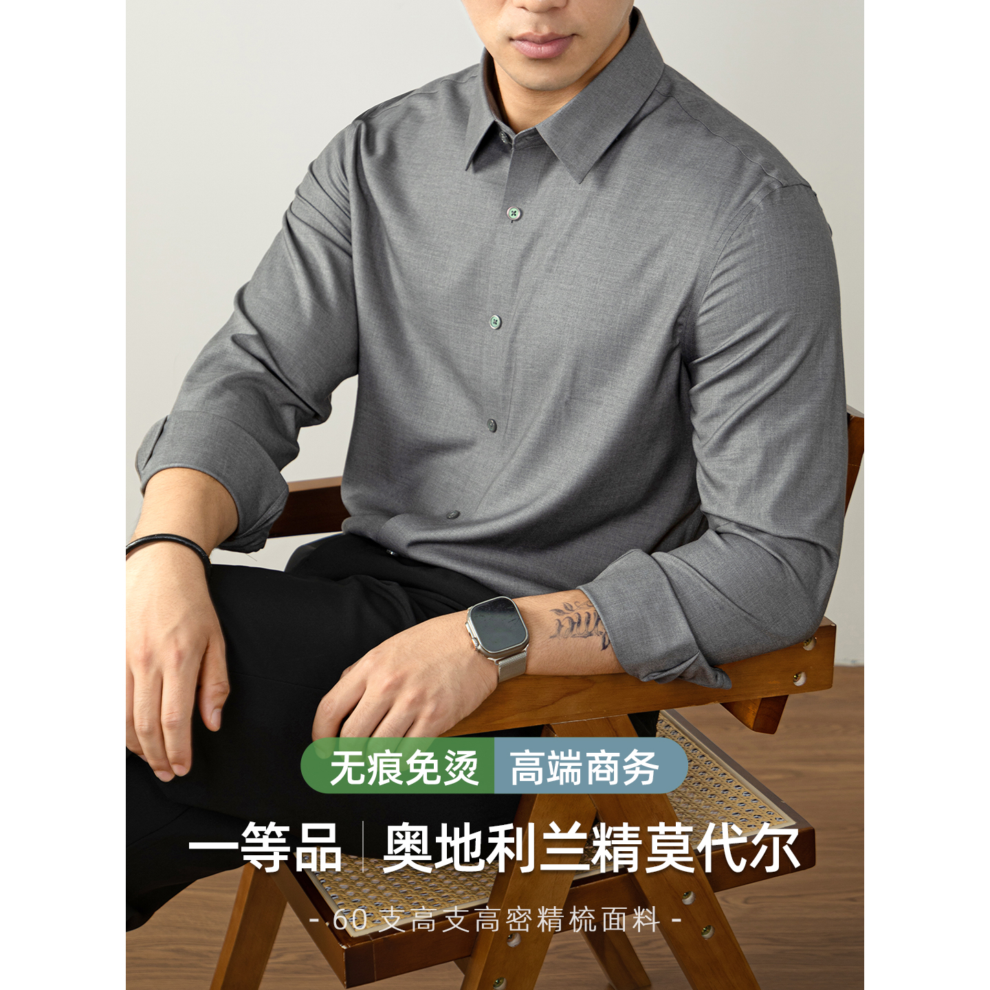 First-class Austrian Lanjing Modal yarn-dyed non-ironing non-marking shirt men's long sleeve high-end business dress shirt
