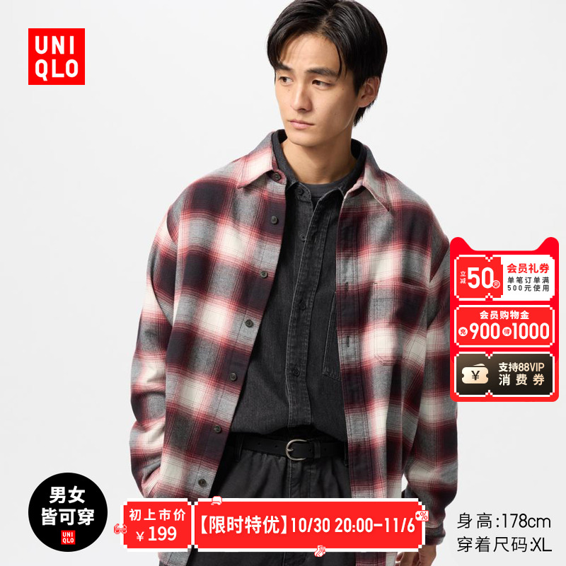 Uniqlo men's and women's flannel plaid shirts/long-sleeved shirts are casual and versatile 470188 478928