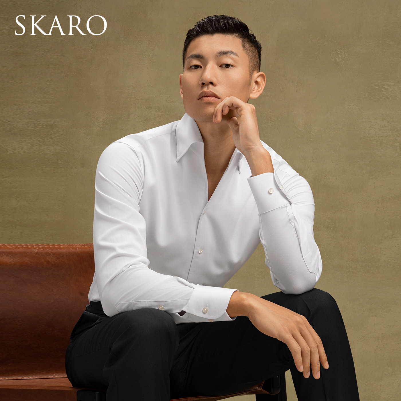 SKARO one-collar shirt men's business formal long-sleeved white shirt