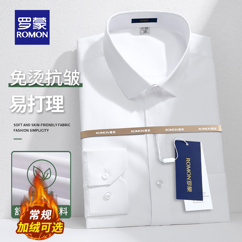 Romon white shirt men's long sleeve business workwear formal groomsmen shirt men's wedding suit inch shirt autumn and winter