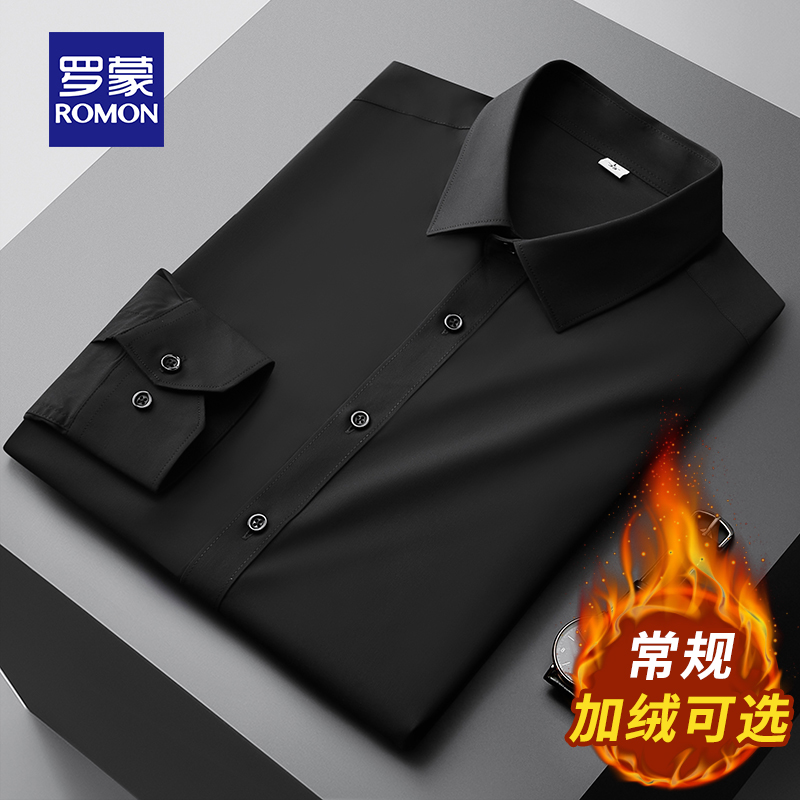 Romon Black Fleece Long Sleeve Shirt Men's 2025 New Business High-End Thickened Men's Warm Liner Clothes