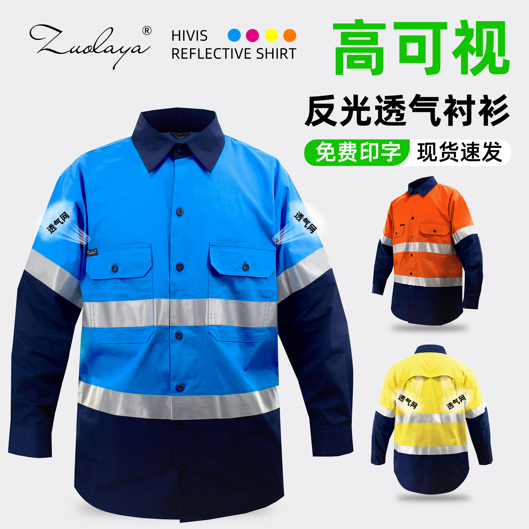Foreign trade cotton long sleeve reflective strip tooling breathable mesh shirt construction site sanitation workwear labor protection clothing can print LOGO