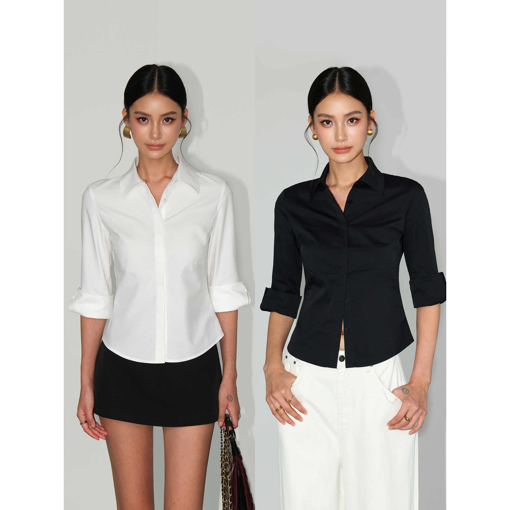 NEVA HU Free New Commuter Premium Black Waist Shirt Feminine Slim Commuter Mid-Sleeve Shirt
