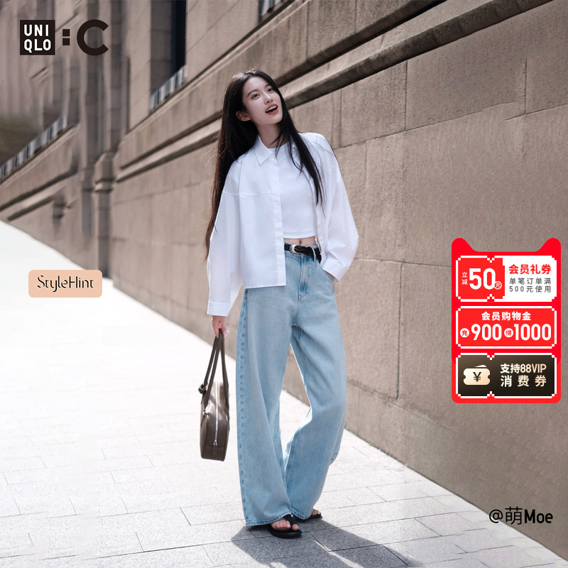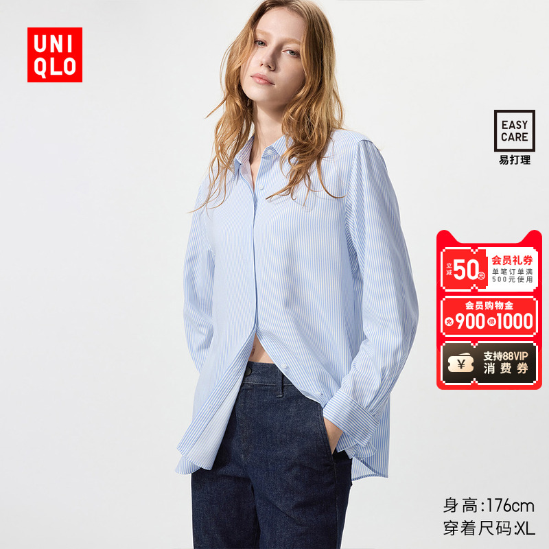 Uniqlo collaboration / women's cotton short shirt / long sleeve shirt 480485