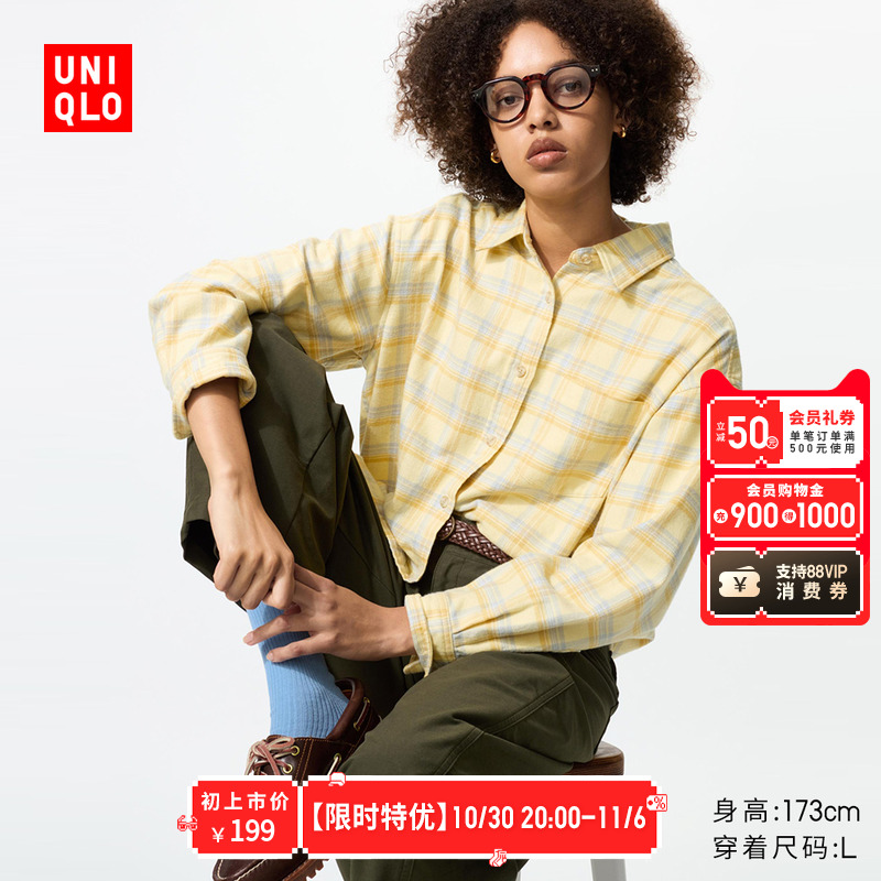 Uniqlo Women's Flannel Shirt/Plaid Plaid Long Sleeve Shirt 25 Fall/Winter New 485263