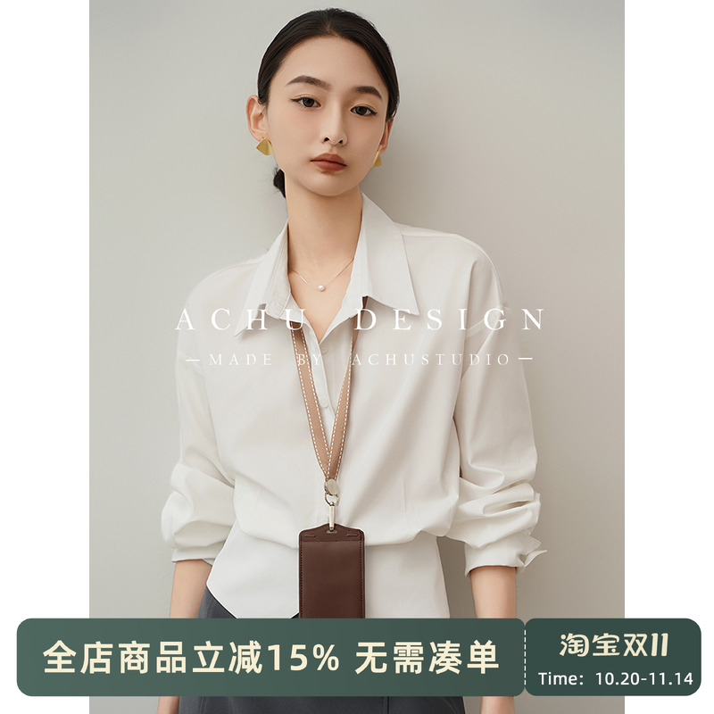 ACHU excellent cut white waist shirt women's summer professional commuter shirt slit design top