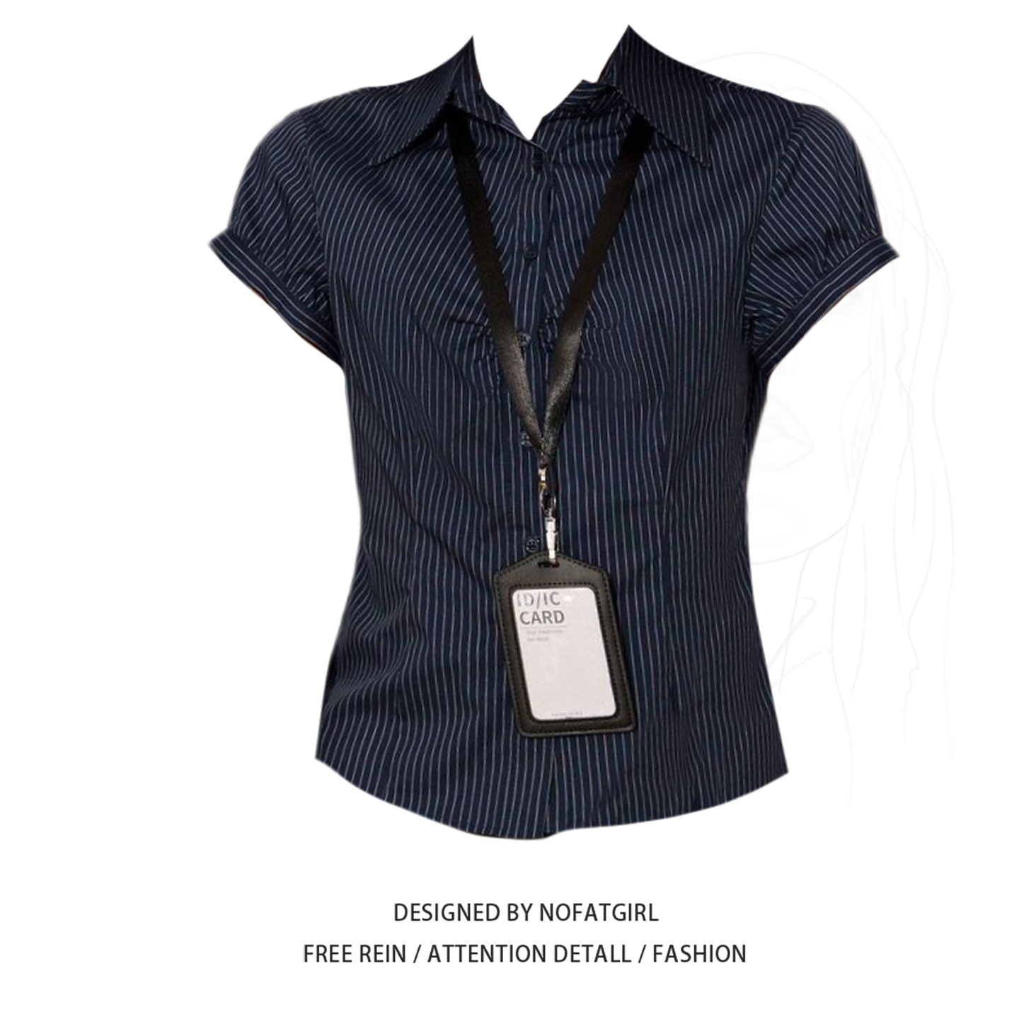 Plus-size chubby sister, American hot girl, navy blue striped shoulder shirt, women's summer design, slim-fitting waist shirt