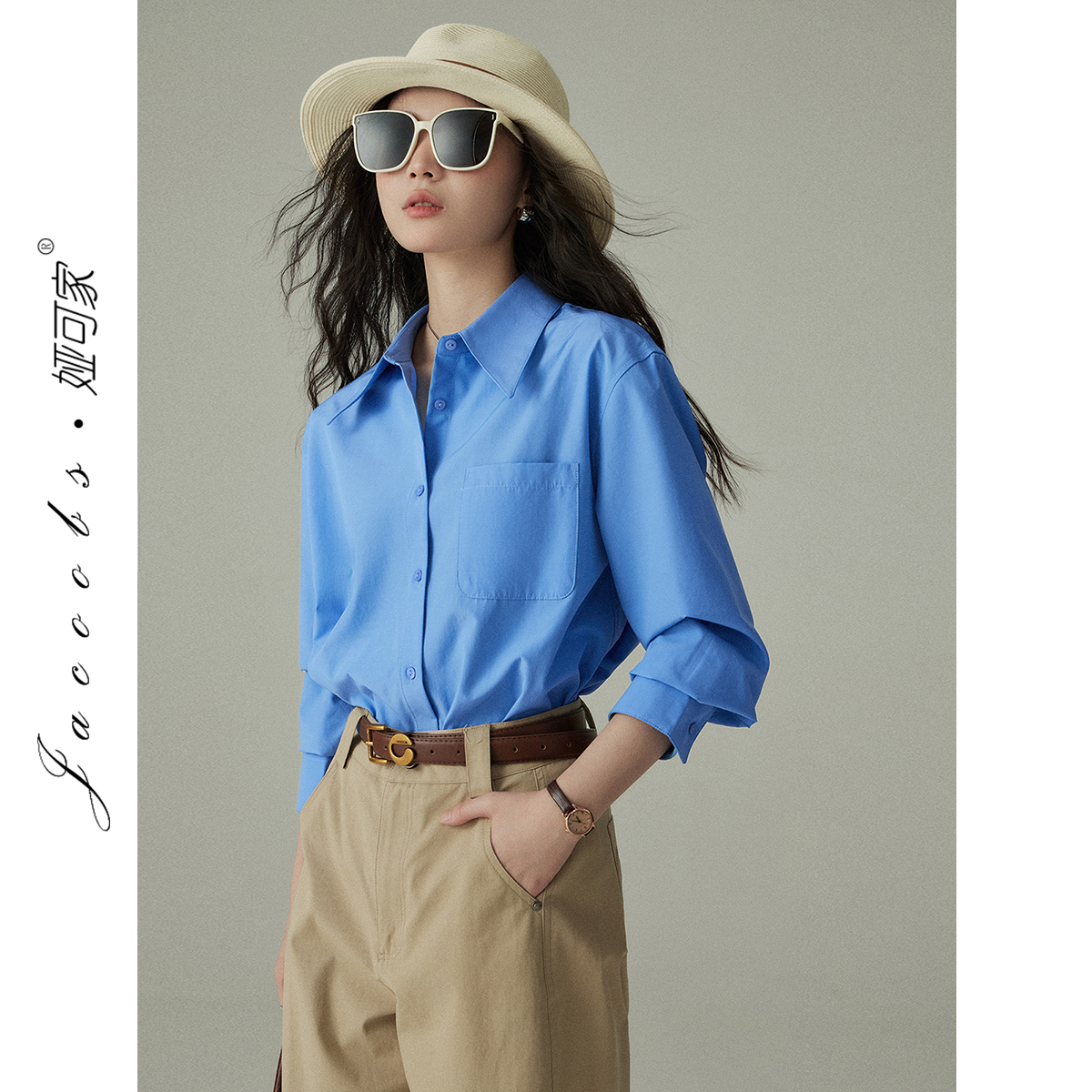 Yakejia can wear shirts in all seasons! Klein Blue French Airy Professional Commuter Slightly loose long-sleeved shirt