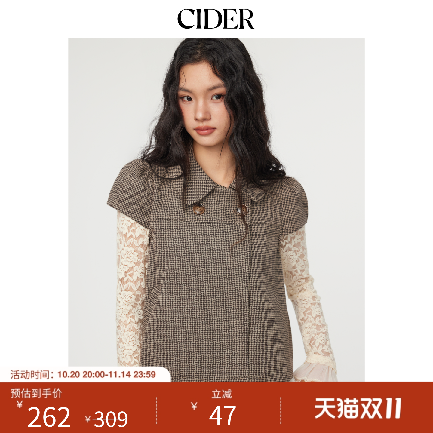 CIDER Double 11 Special Peter Pan Collar Jacket Plaid Shirt Vintage Plaid Short Sleeve Top 114740919