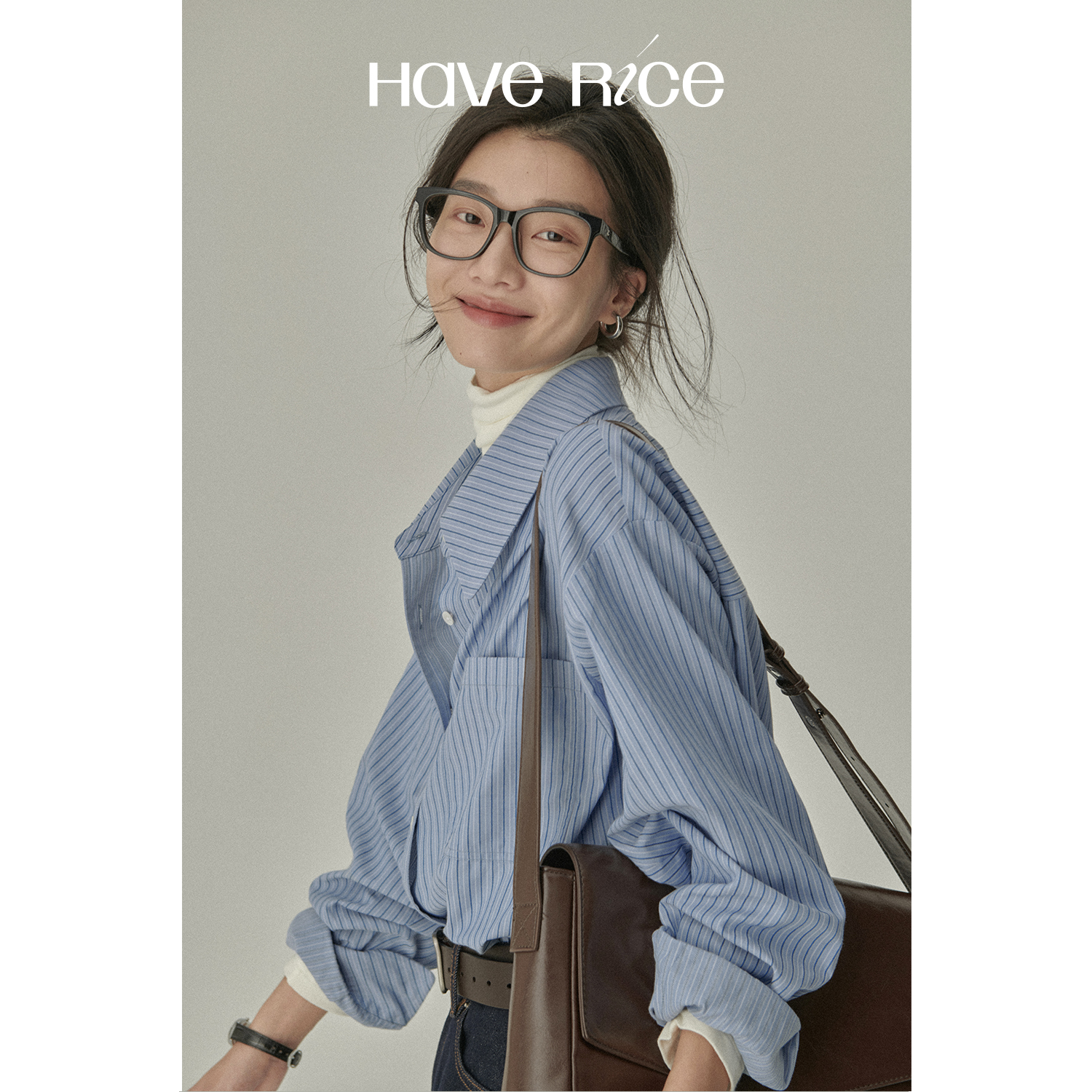 HAPERICE Restaurant Classic Series 2025 Xinjiang Long Stand Cotton Spring and Autumn Striped Shirt New Shirt