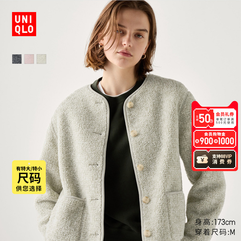 Uniqlo women's imitation lambswool fleece crew neck cardigan/daughter-style jacket 472938