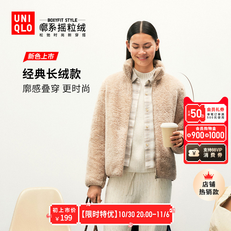 Uniqlo women's men's imitation lambswool fleece casual cardigan long-sleeved loose jacket winter new 479616