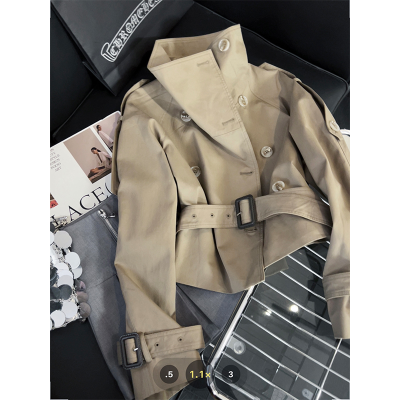 khaki short trench coat women's Korean retro cool style stand-up collar double-breasted small shirt top autumn