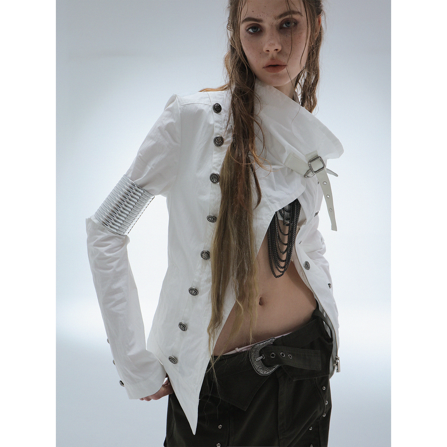 DoublePunch Fall/Winter Original High-Collar Vintage Metal Buckle Windproof Padded Thickened Napoleon Jacket