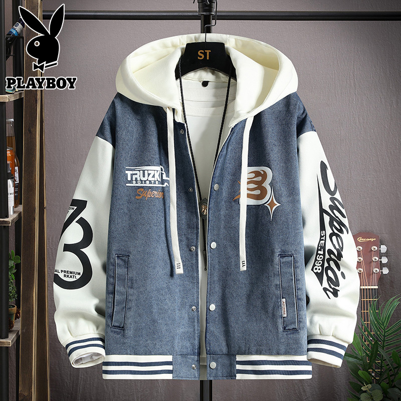 Playboy Denim Jacket Men's Fall/Winter 2025 New Teen Trend Versatile Patchwork Top Jacket