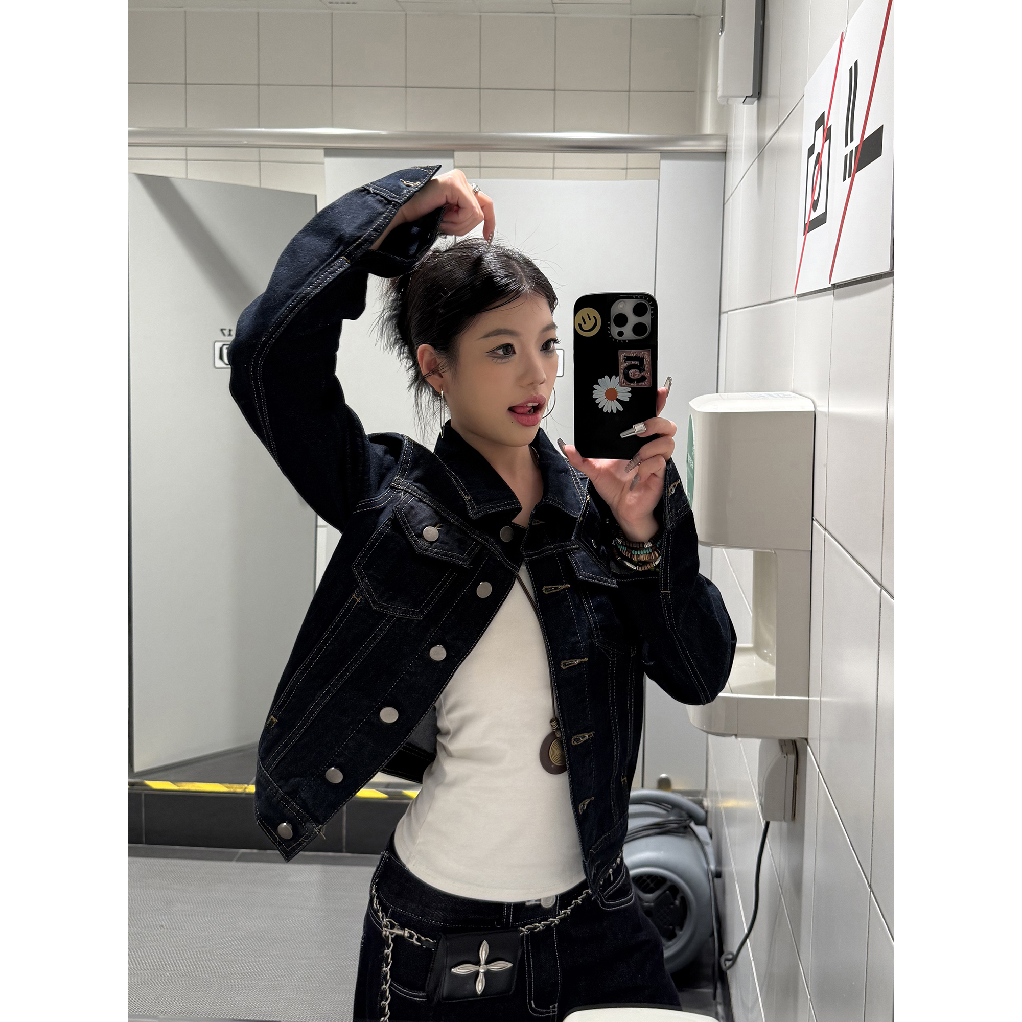 【Song Yanfei's same style】Bobcat denim jacket Heavy twill denim cat beard stand-up collar short jacket