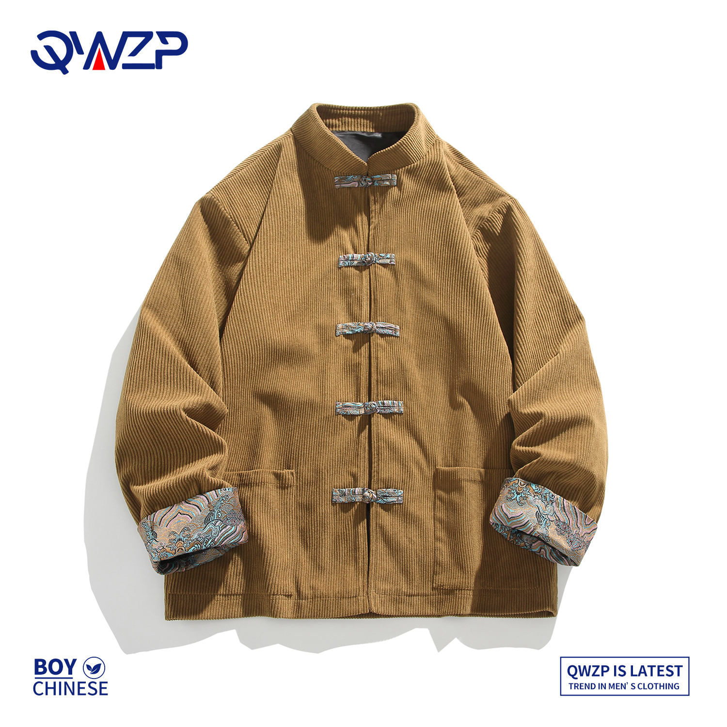 QWZP CITYBOY new Chinese style contrast buckle corduroy jacket men's Chinese style retro Tang jacket