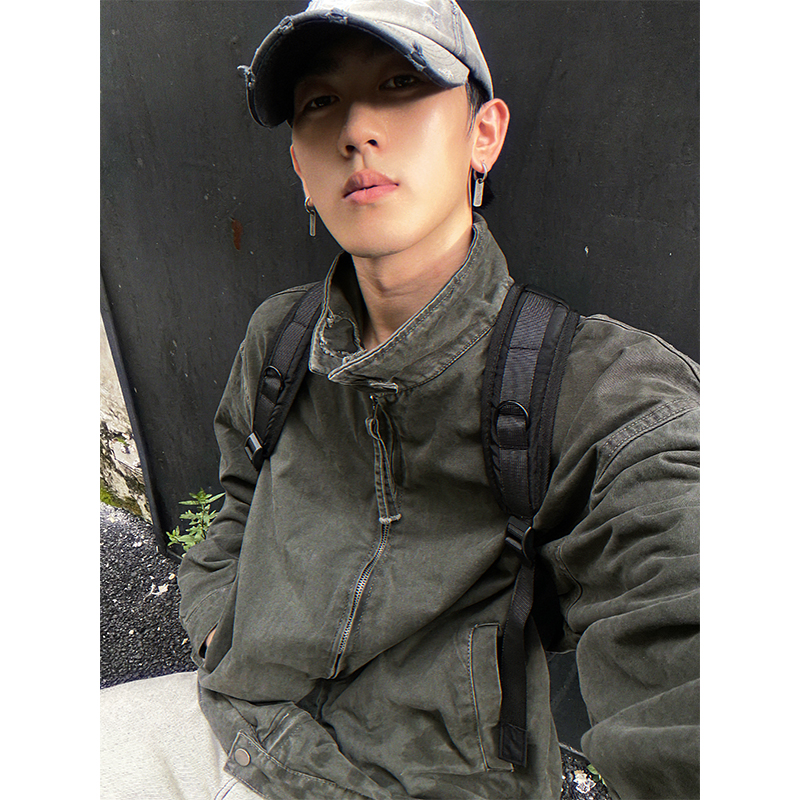Escape from the South of Liberation American Retro Cleanfit Heavy Stand Collar Cargo Jacket Men's Short Harrington Jacket