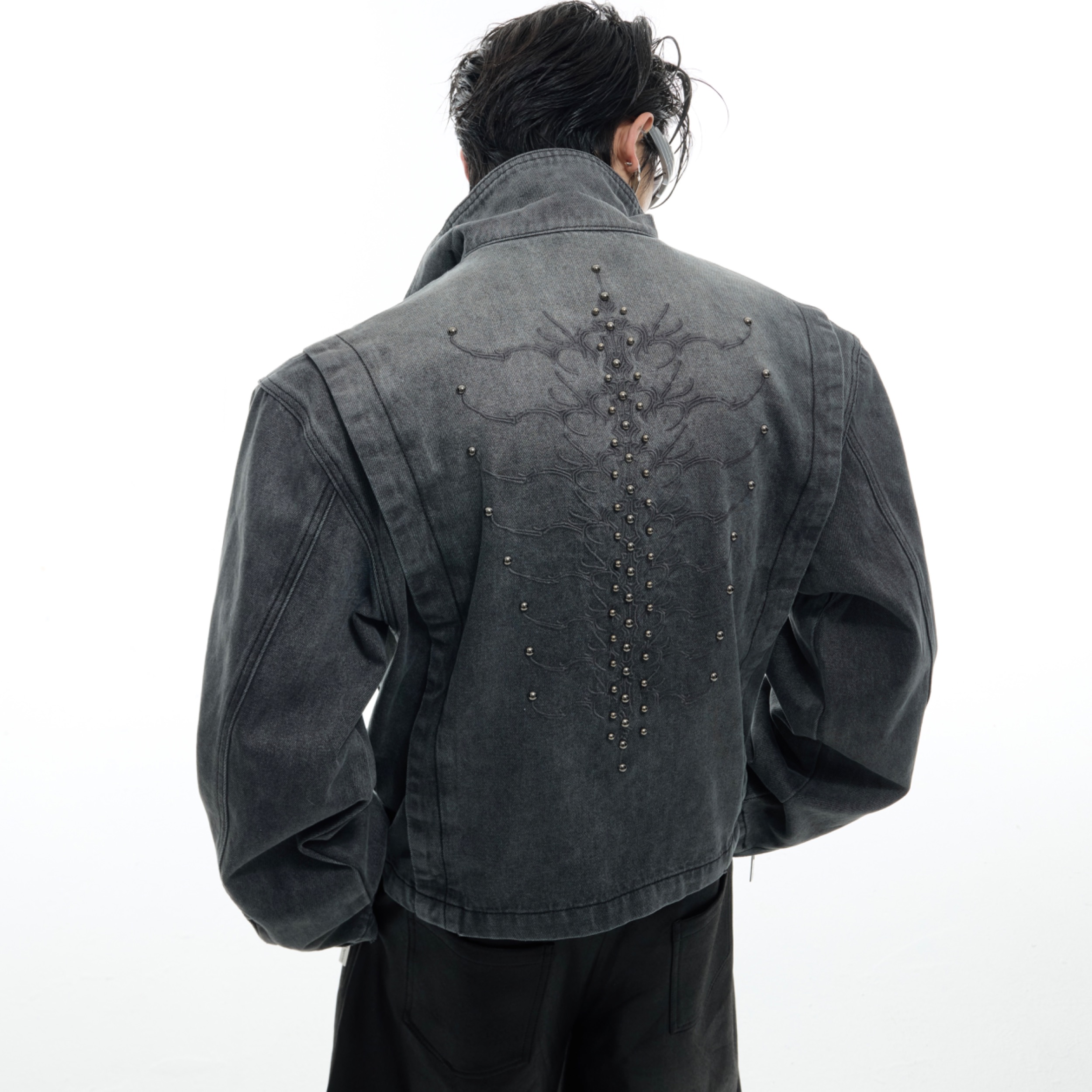 ArguE CulturE Heavy Vintage Washed Rivet Spine Denim Jacket Short Wide Fit Jacket Jacket