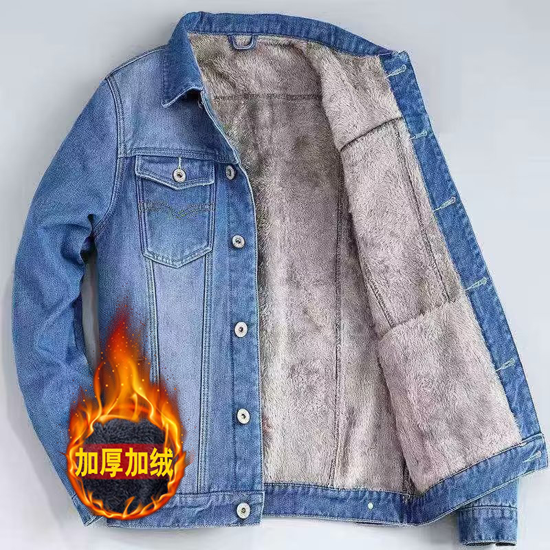 Fleece denim jacket, men's long-sleeved winter Korean version of warm cotton clothes, cotton clothes, trendy thickened cargo jackets, jackets