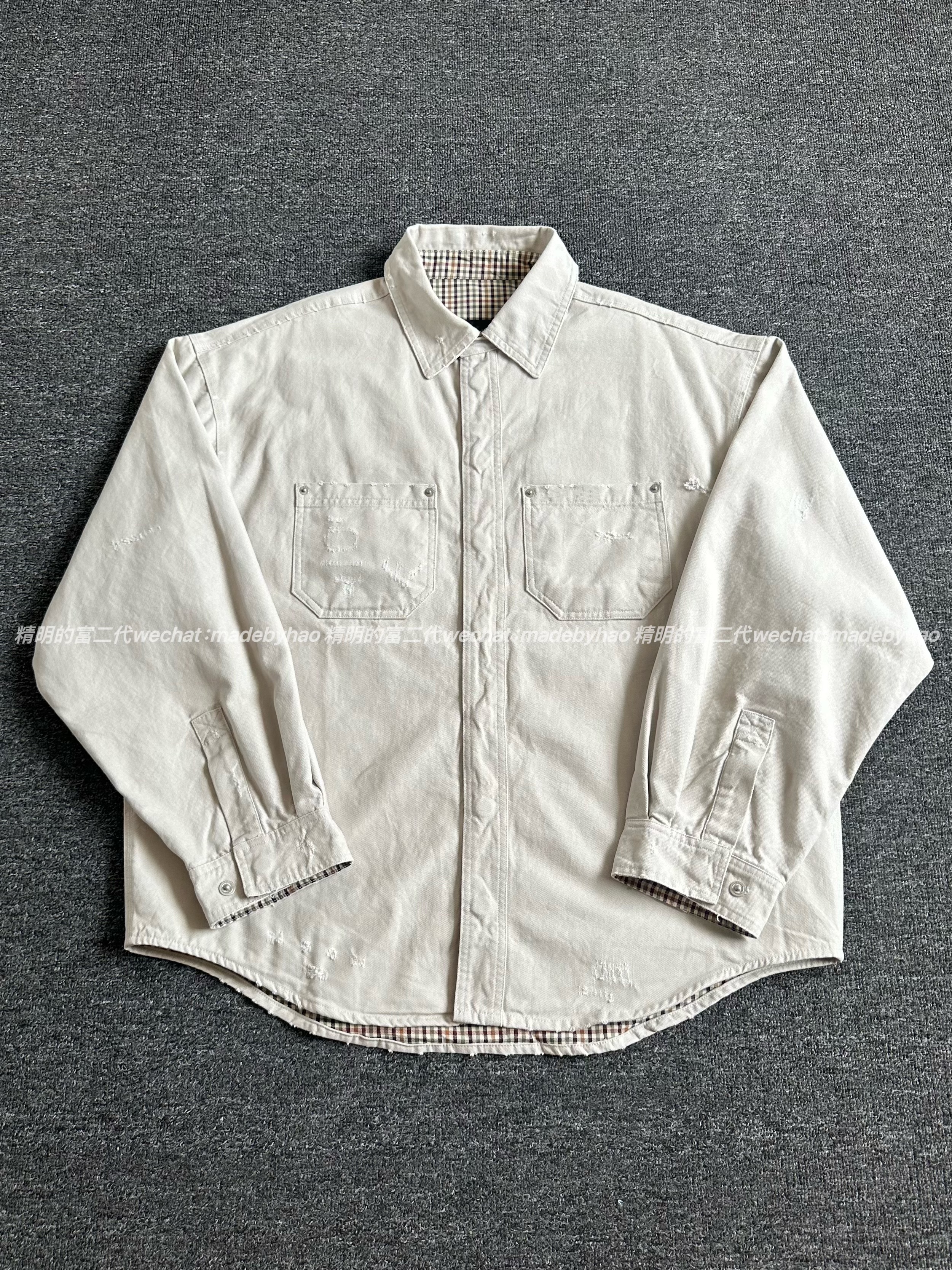 【Ceiling Top】25FW Vintage Canvas Distressed Plaid Patchwork Shirt Jacket Unisex Style