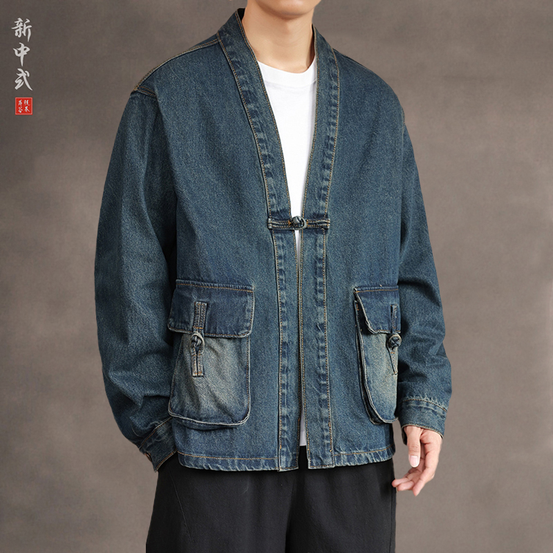 Lil Monster's new washed denim jacket is a distressed American spring and autumn trendy loose cargo cotton jacket