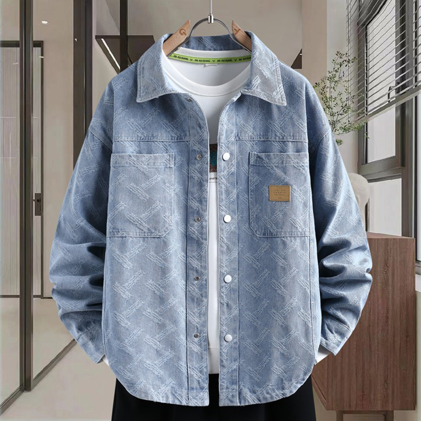 American cleanfit jacquard denim jacket men's trendy luxury top spring and autumn loose casual jacket