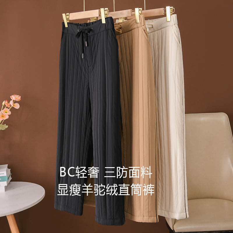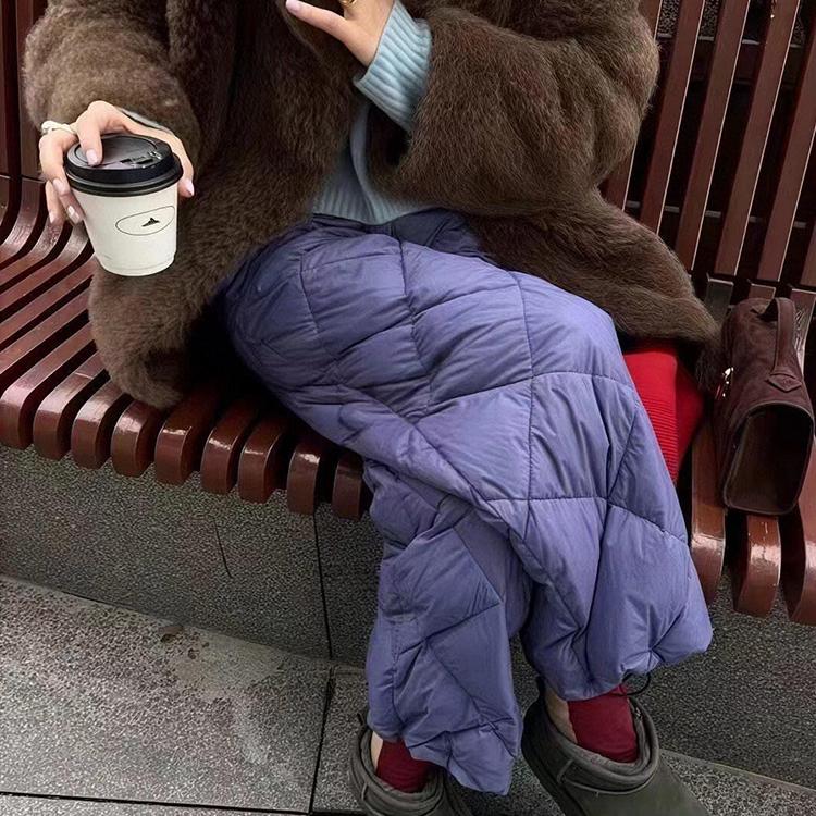 Ma Lin's new winter long-staple cotton brocade blend texture and pleats 90 white goose down thickened warm down pants