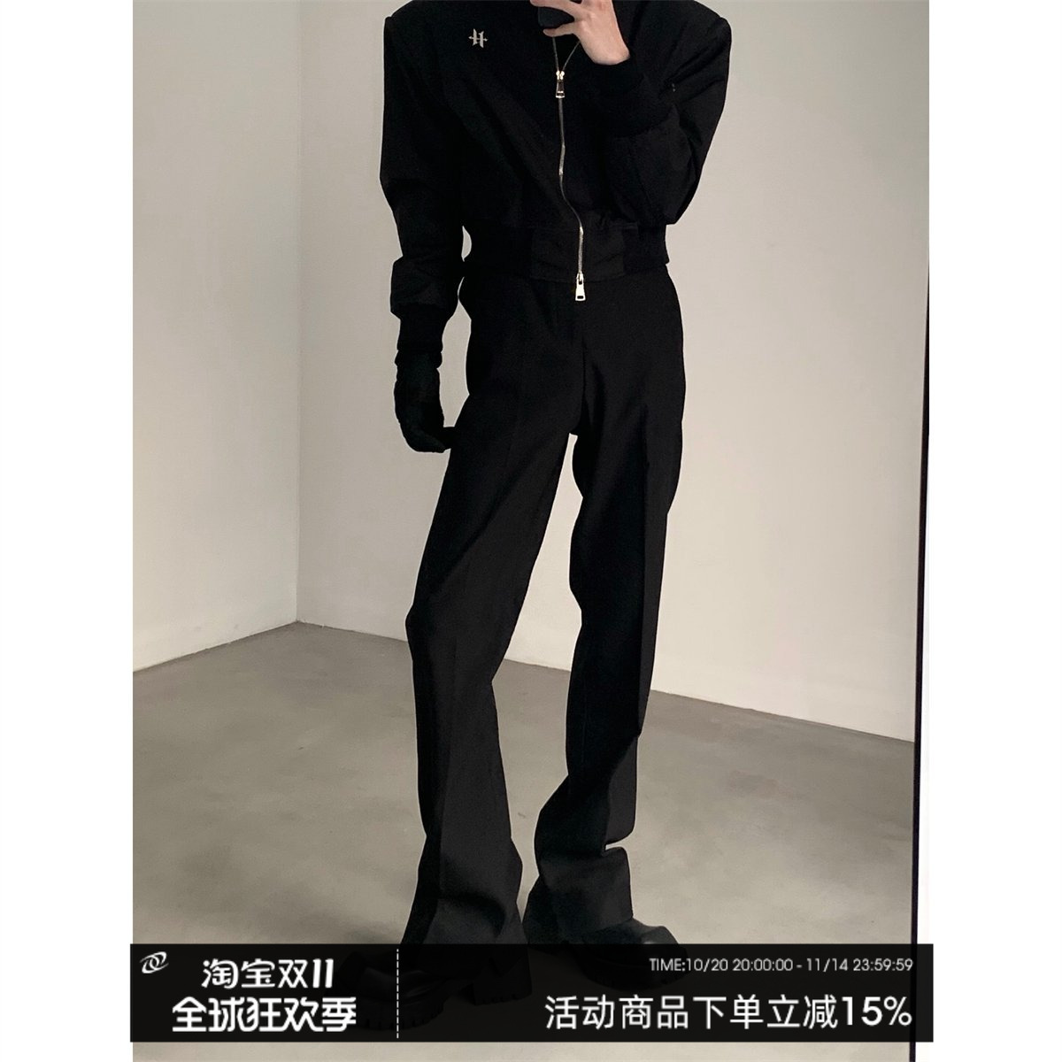 Autumn mountain style/niche high street vibe style slit micro-flared trousers, men's drape, high-end sense of accumulation floor-length pants