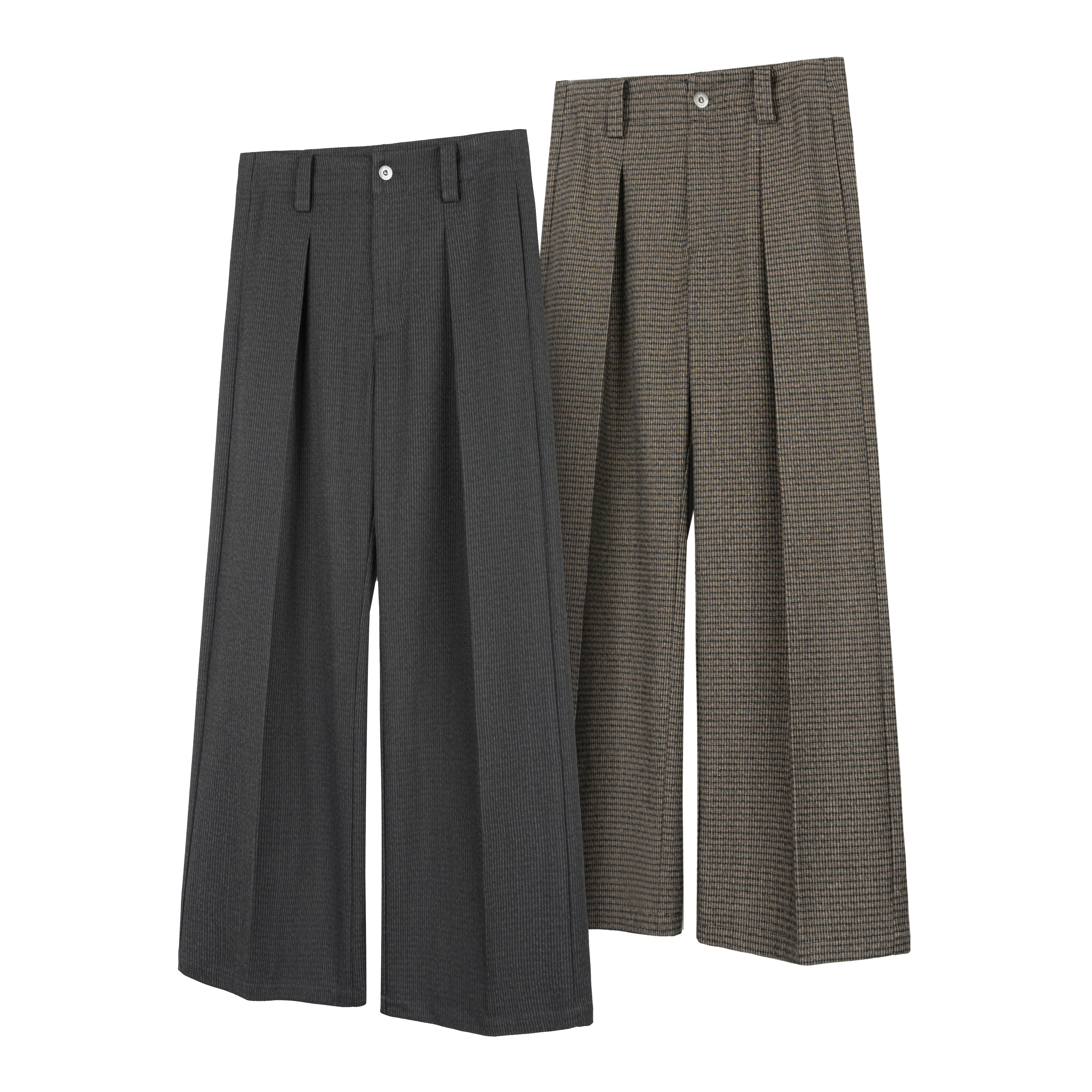 DESERTO wool blend striped houndstooth A-line split pleats casual wide-leg drape loose trousers trousers men