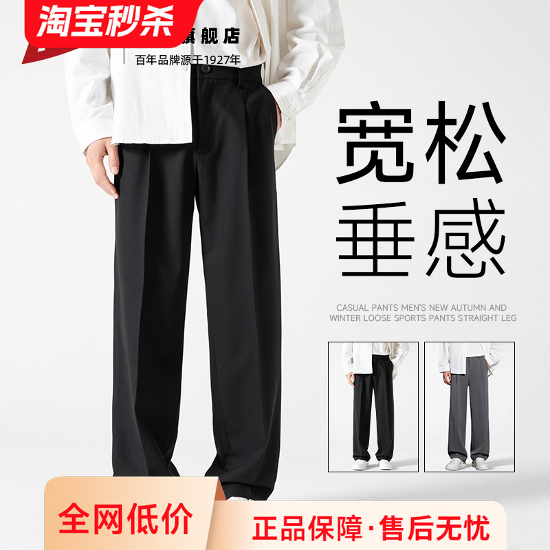 Pull-back suit pants, men's thickened trousers, drape, high-end formal slacks, loose straight spring and autumn black pants