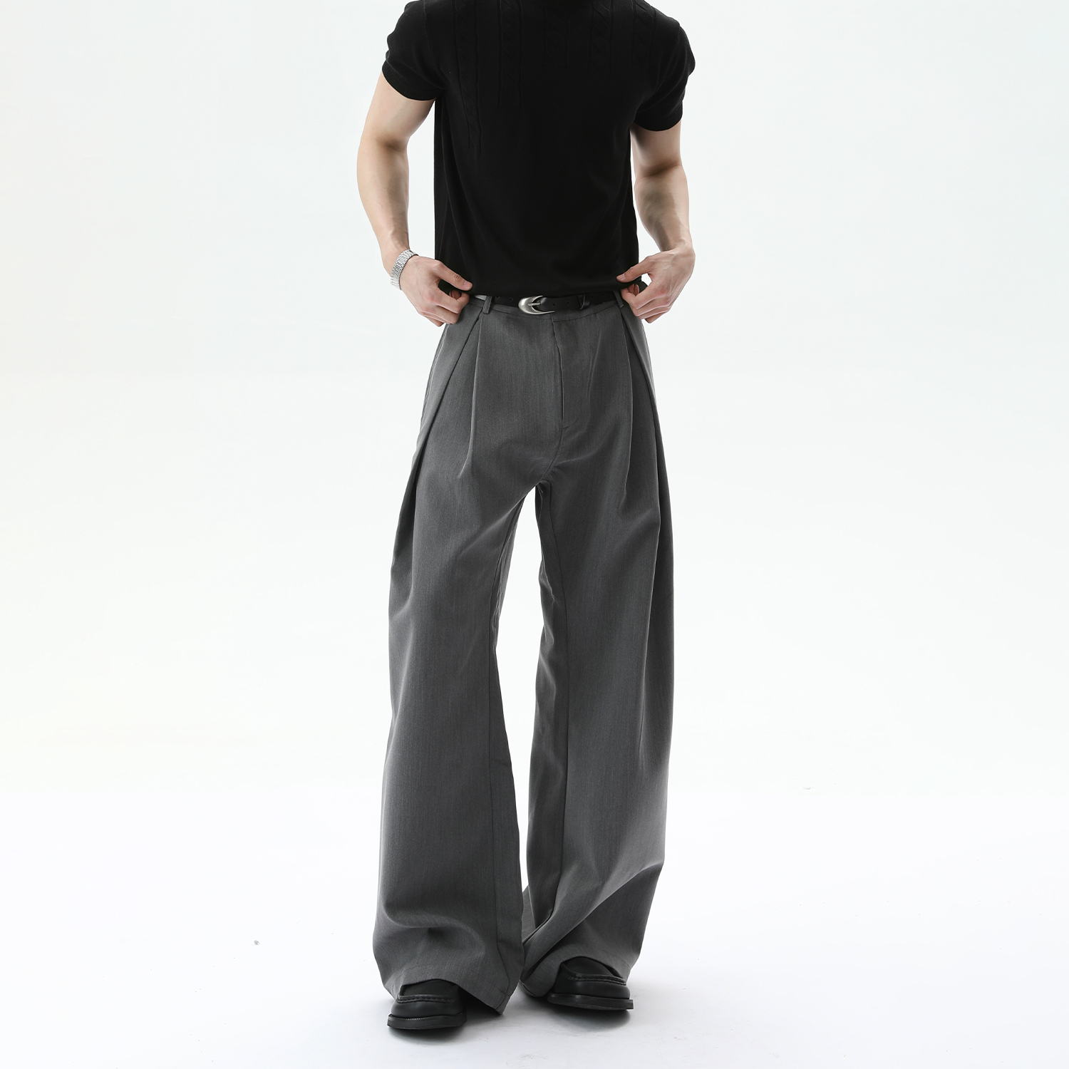 VERY FEWEST Summer's new heavyweight three-dimensional pleated wide-leg slacks men's and women's design suit pants