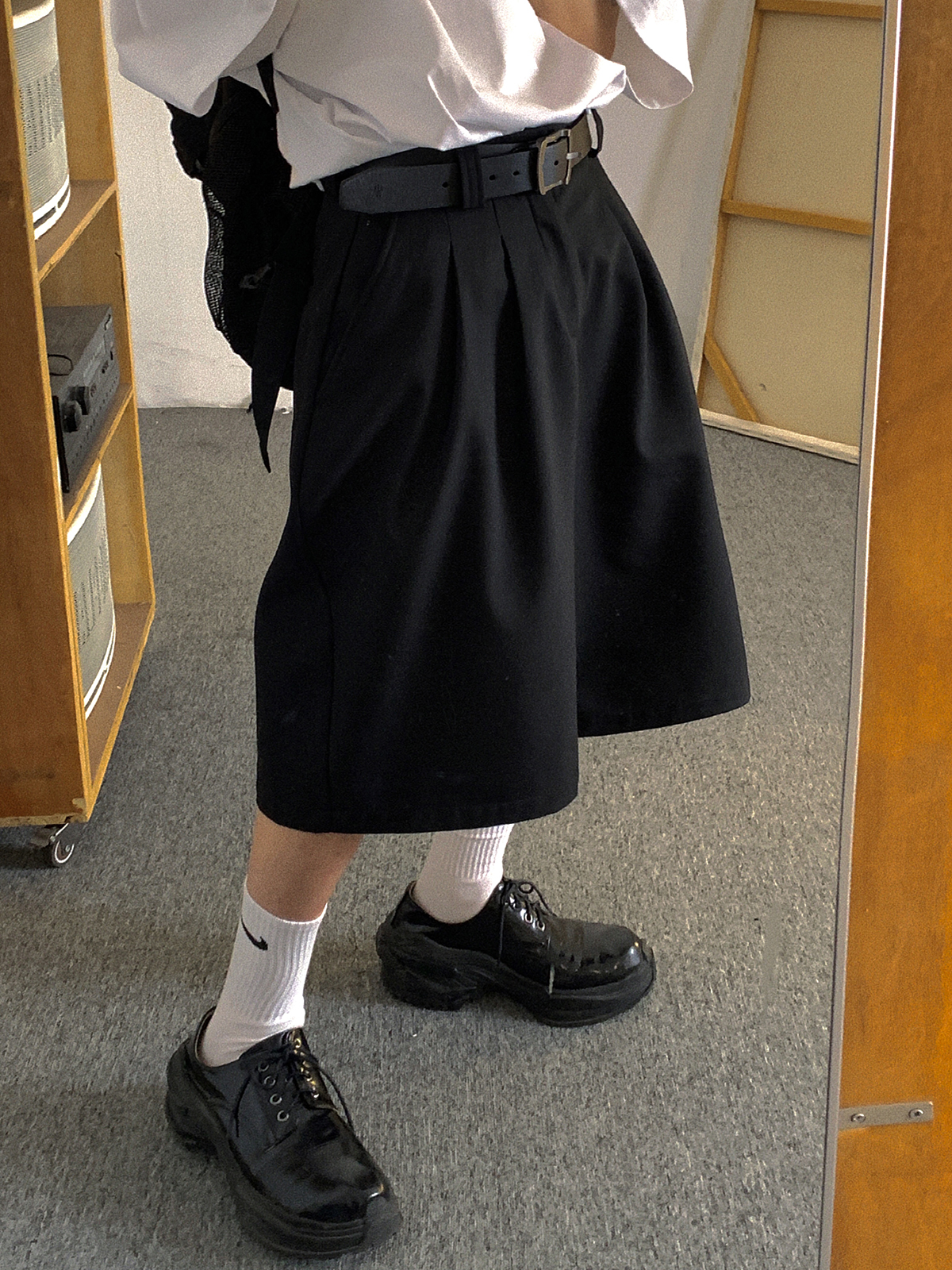 Aurocean Black Suit Shorts Summer's new ultra-loose crisp Japanese preppy solid color pants
