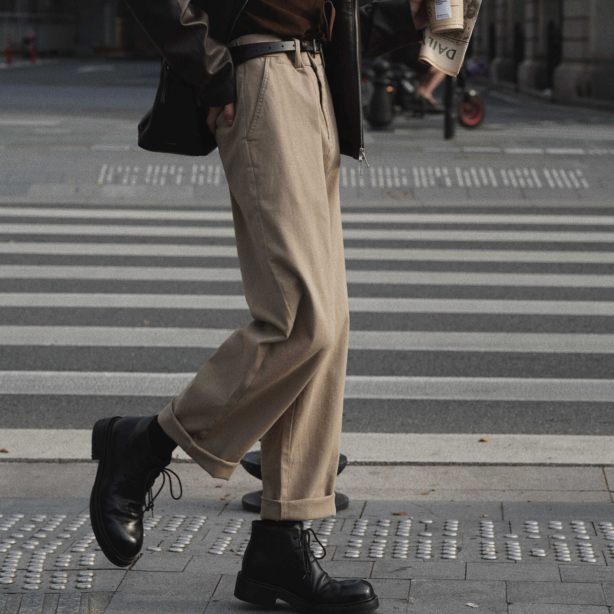 Eli [Old Street Light and Shadow] Retro Xinjiang Cotton Washed Twill Drape Loose Simple Casual Men's Straight-Leg Pants