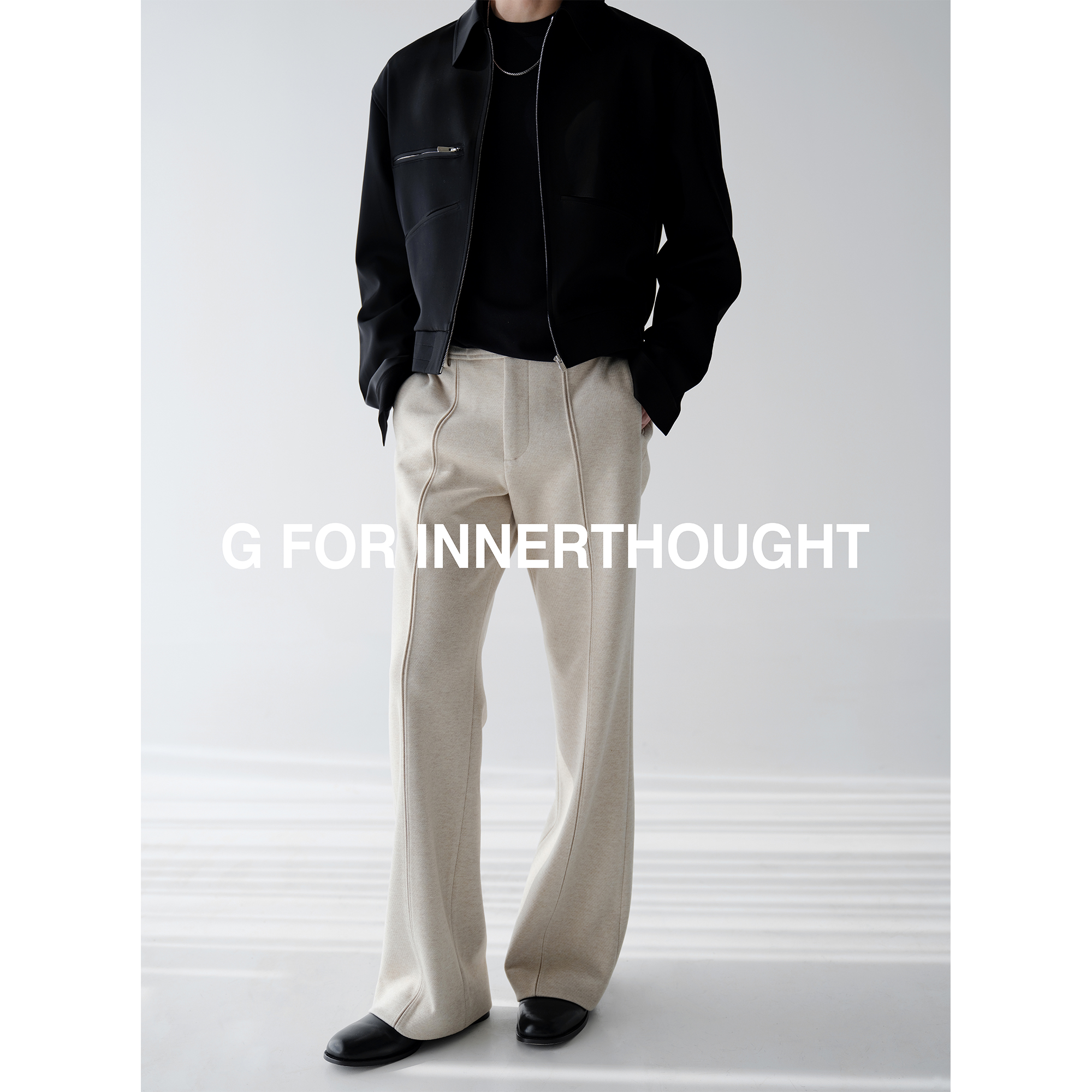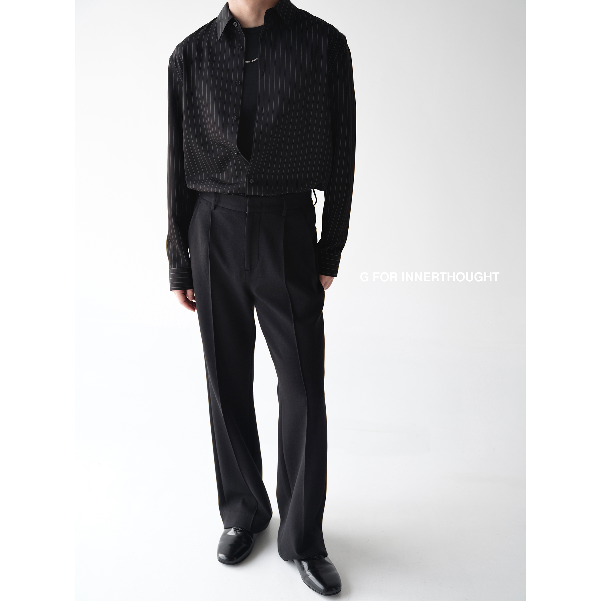 G FOR INNERTHOUGHT|Japanese triacetic acid is comfortable and lightweight, with a narrow waist and straight slit and black trousers