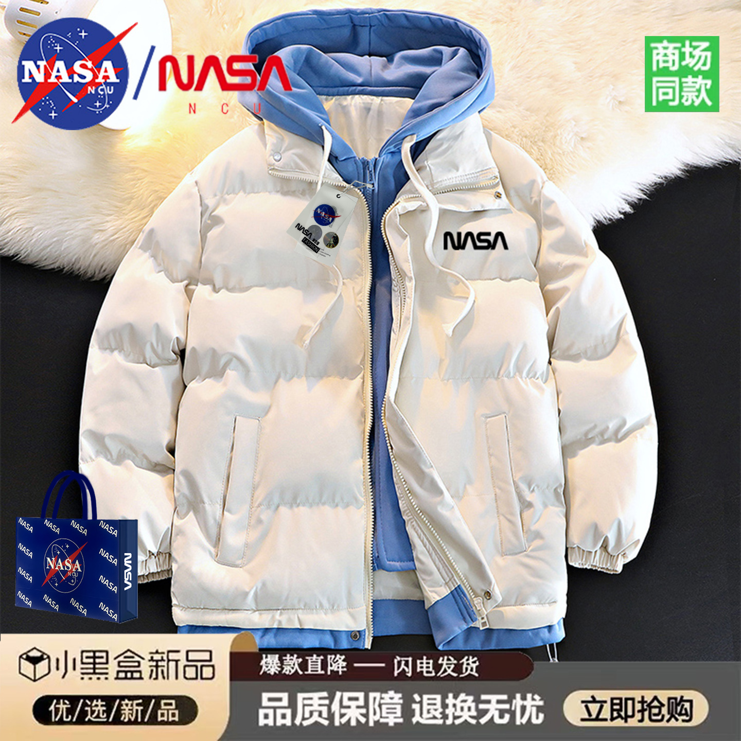 Out of season clearance NASA winter cotton clothes men's fake two pieces of hooded warm thickened trendy couple padded jacket padded jacket