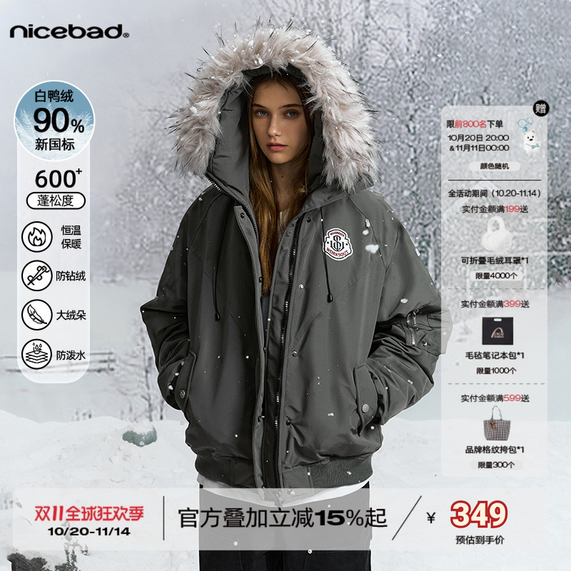 NICEBAD detachable fur collar hooded parka cotton jacket trendy warm down jacket