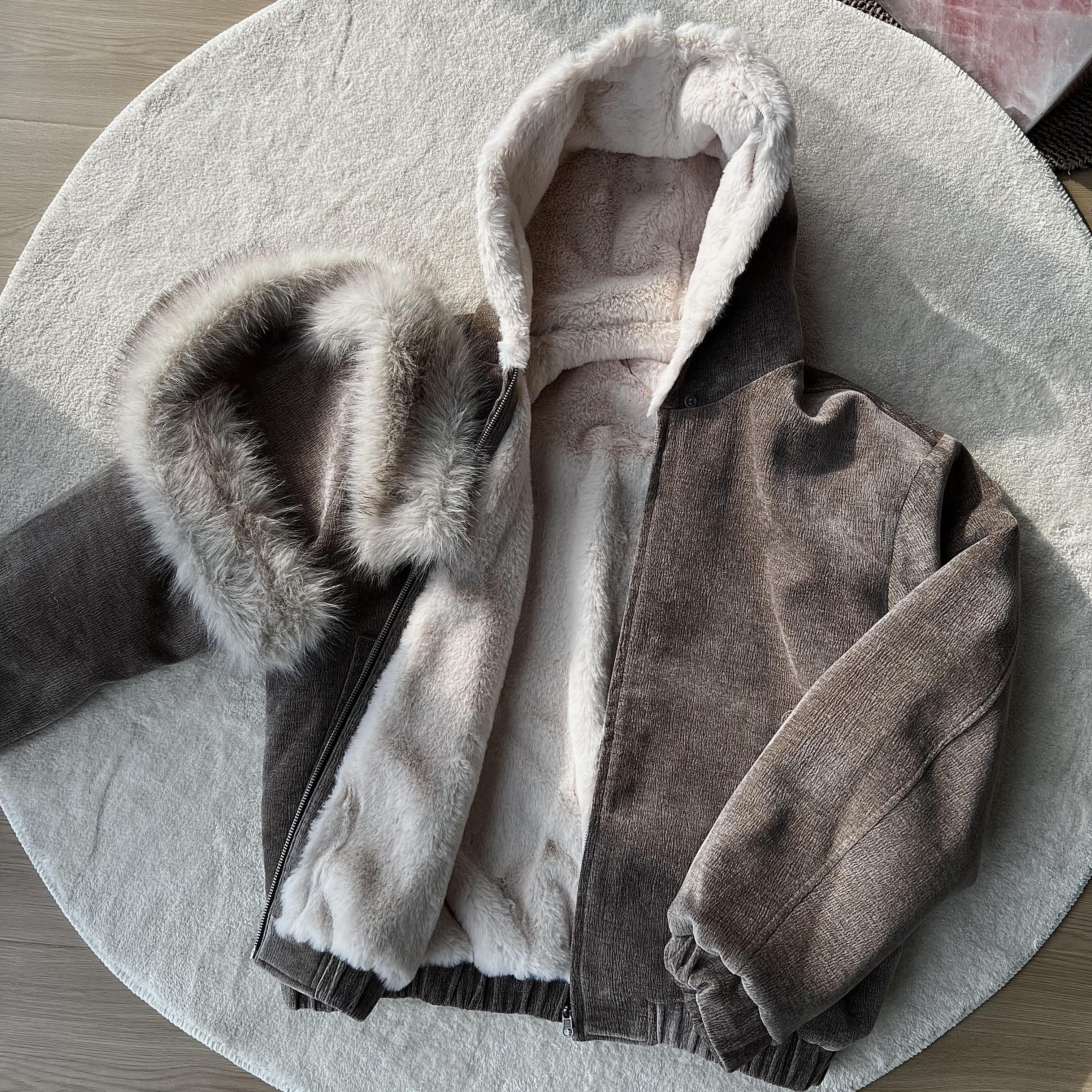 SUKCHOR "One Piece for the Winter" reversible wears a refrigerated rabbit fur vintage fur collar hooded mountain carving cotton jacket