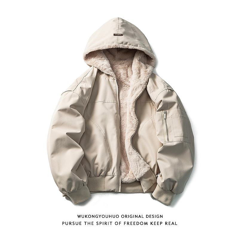 Wukong has stock, winter seat mountain carving fleece thickened hooded cotton suit, men's American flight jacket, heavy cotton jacket