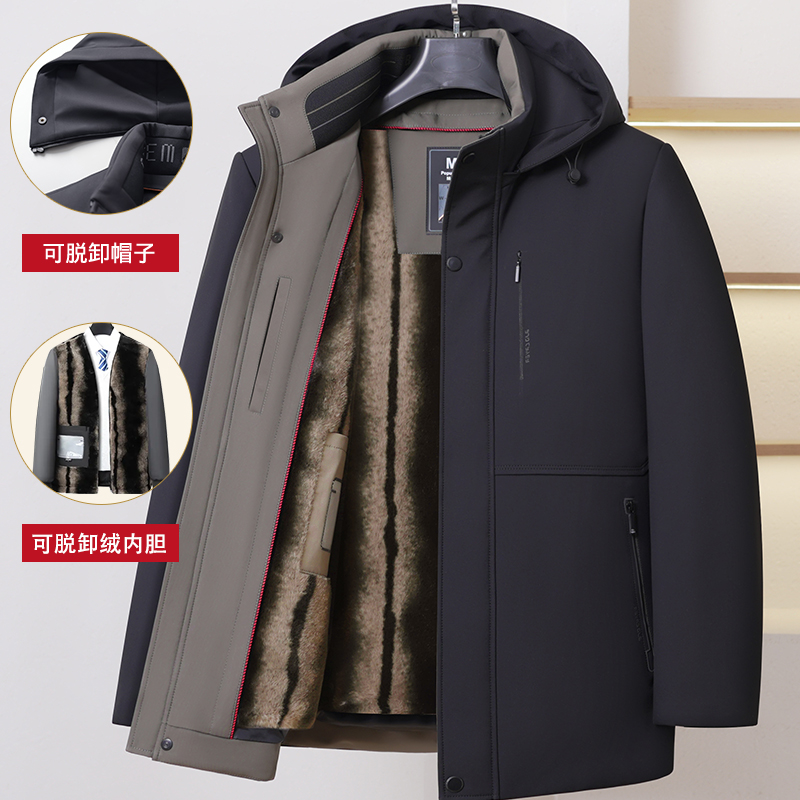 Dad's winter jacket with fleece and thickened warm season padded jacket, middle-aged and elderly men's down padded jacket, grandpa cotton coat