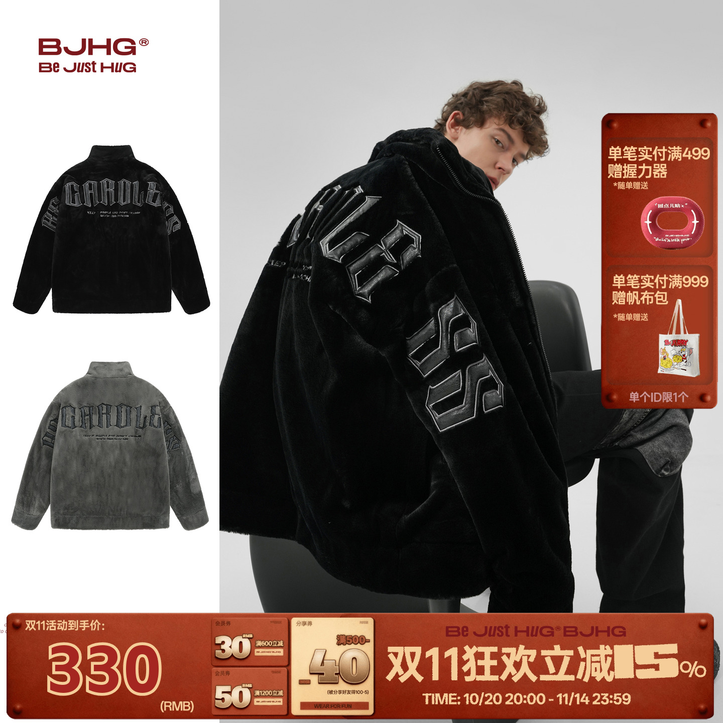 BJHG recklessly imitation rabbit plush jacket padded jacket men's winter cotton jacket American thickened luxury jacket
