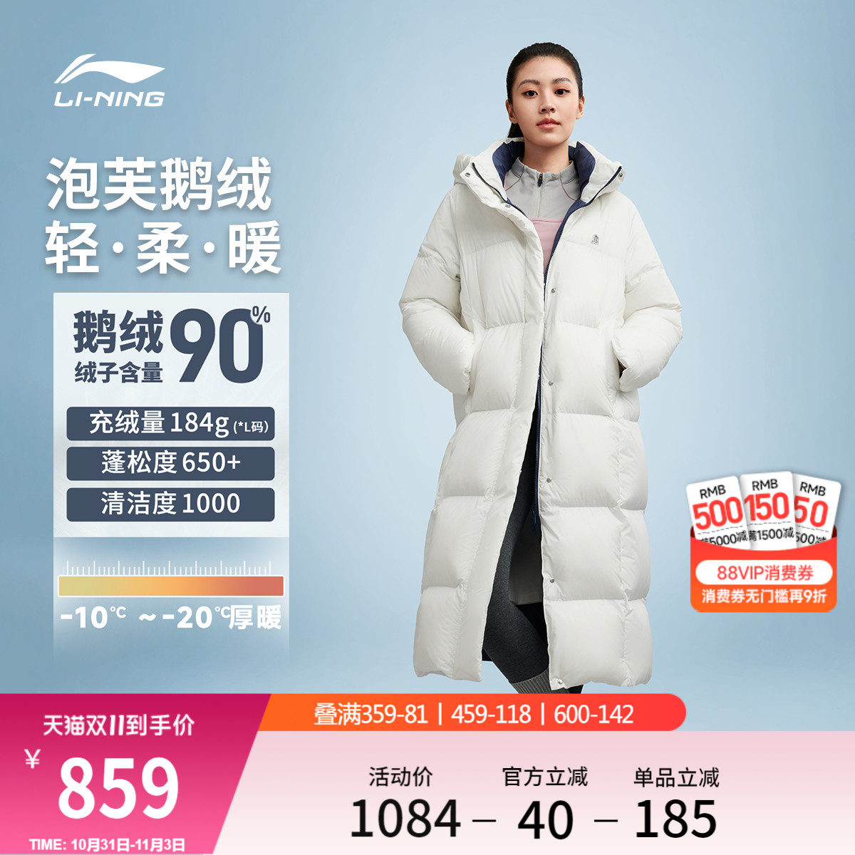 Li Ning hot pot down jacket丨Winter 2025 new long clothes women's hooded goose down warm sports top